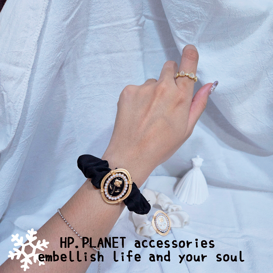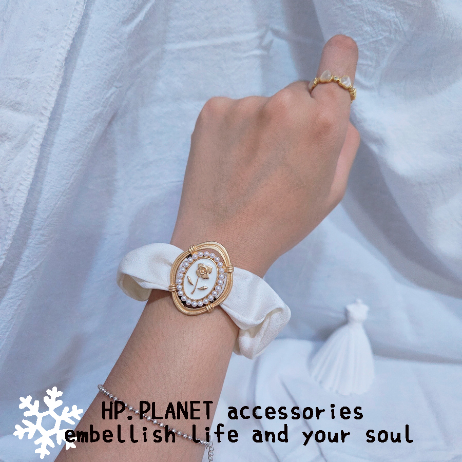 法式玫瑰閃鑽蝴蝶結緞面髪圈