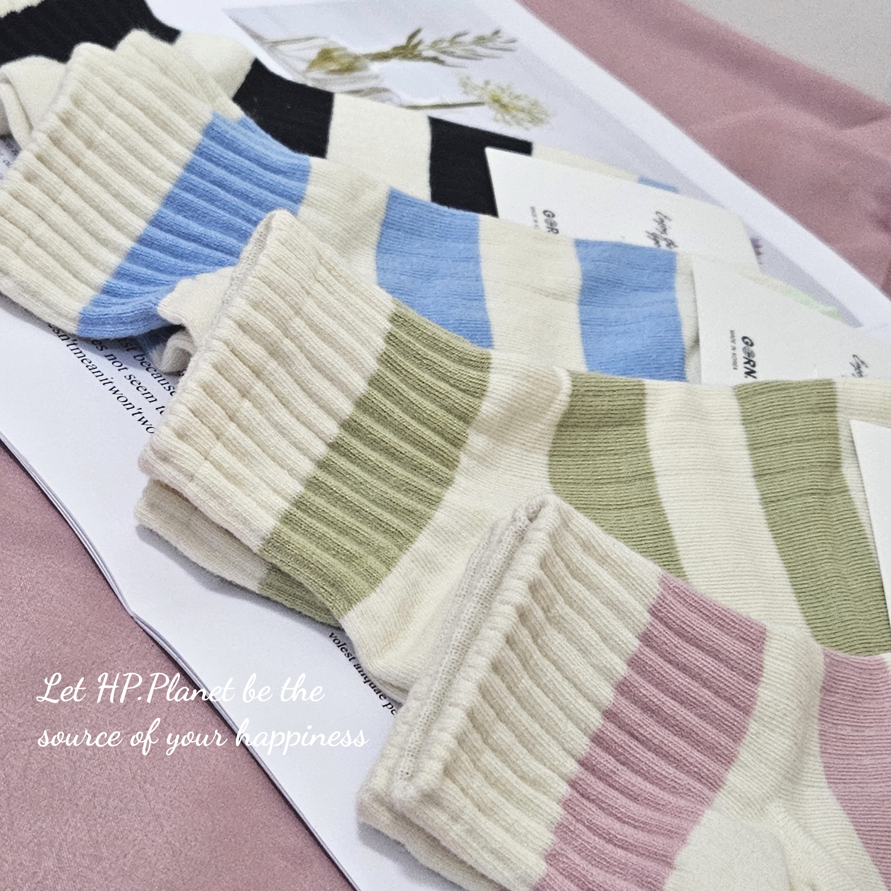 H闆自留款 正韓 素面/彩色條紋微笑襪襪
