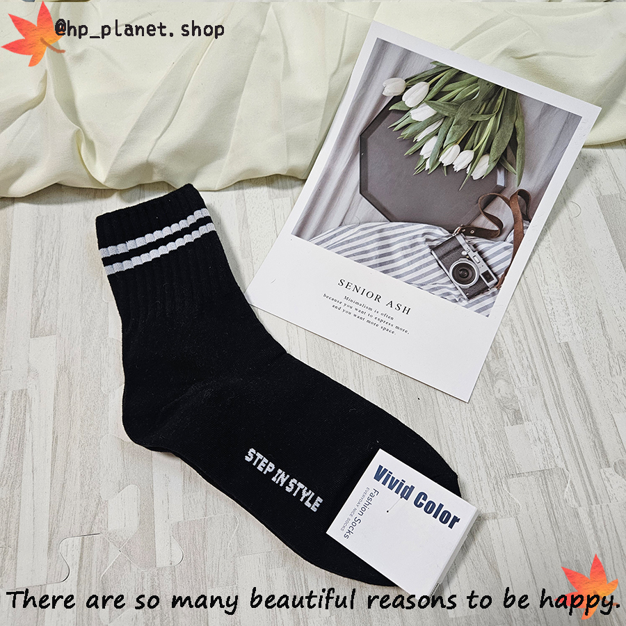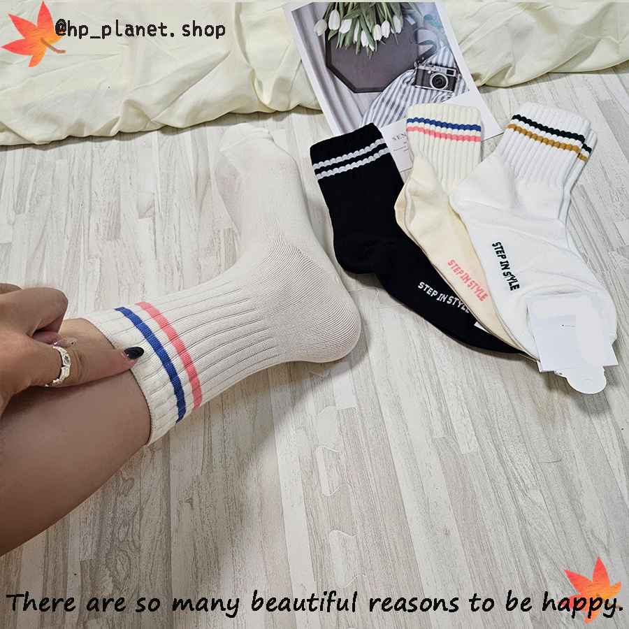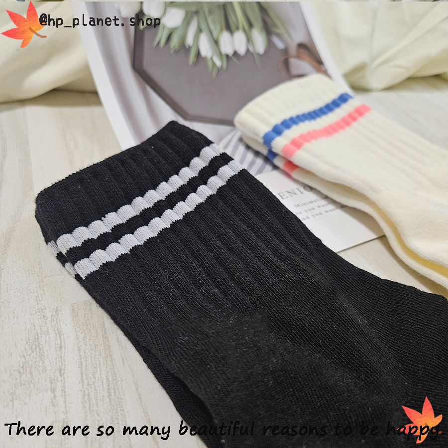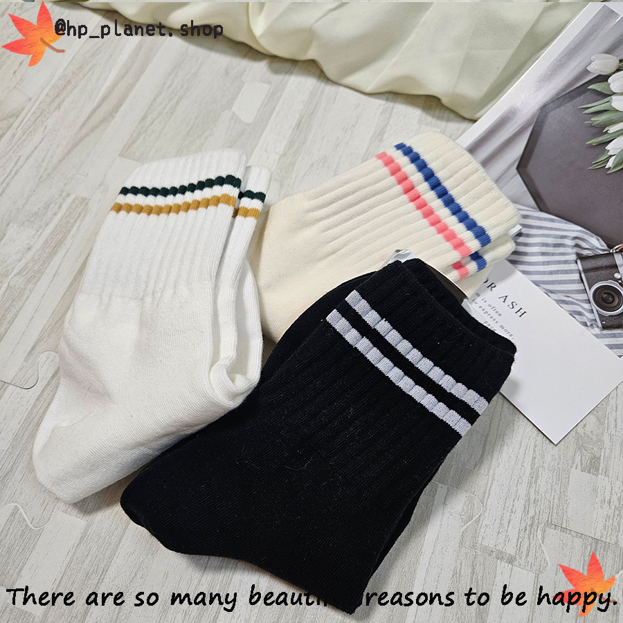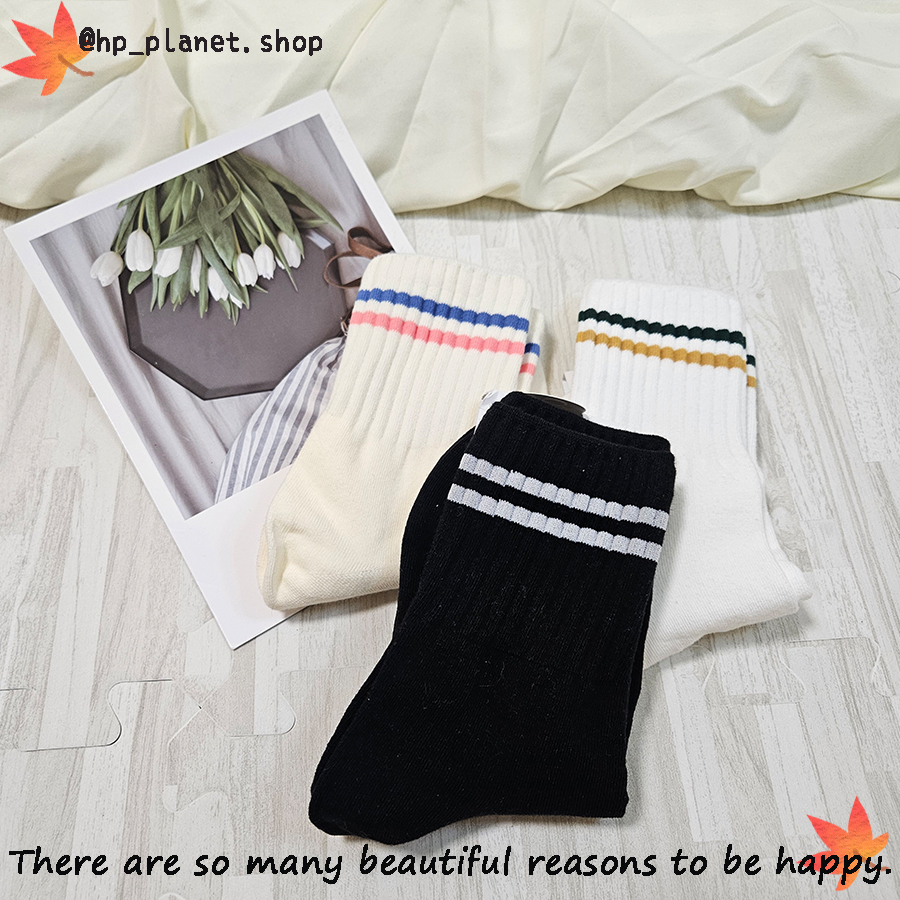 正韓 百搭運動風雙槓短襪