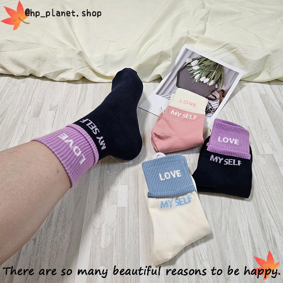 正韓 I STILL LOVE YOU笑臉中筒襪