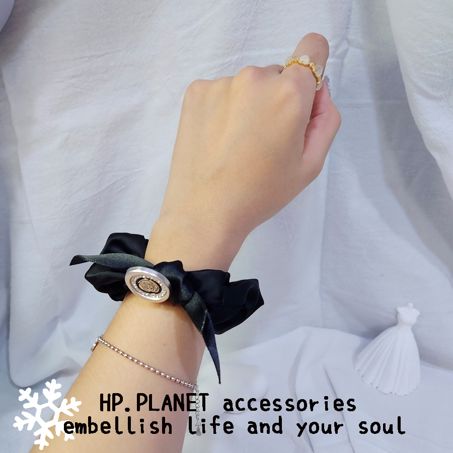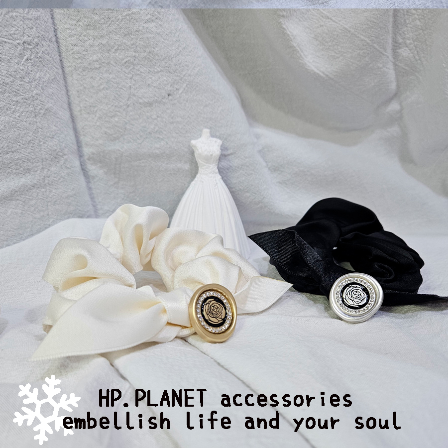 法式玫瑰閃鑽蝴蝶結緞面髪圈