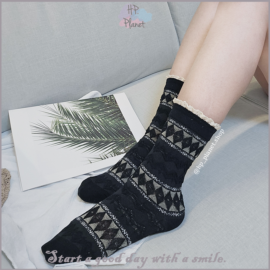 秋冬甜系花邊波西米亞襪