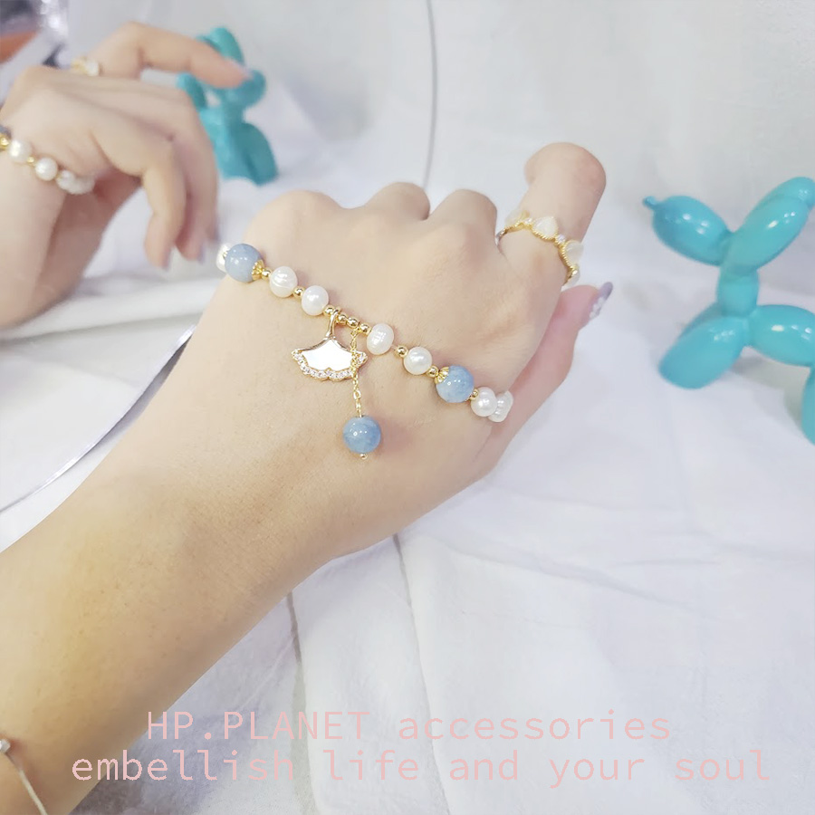 材質|天然石+鍍18K金+淡水珍珠+貝殼片