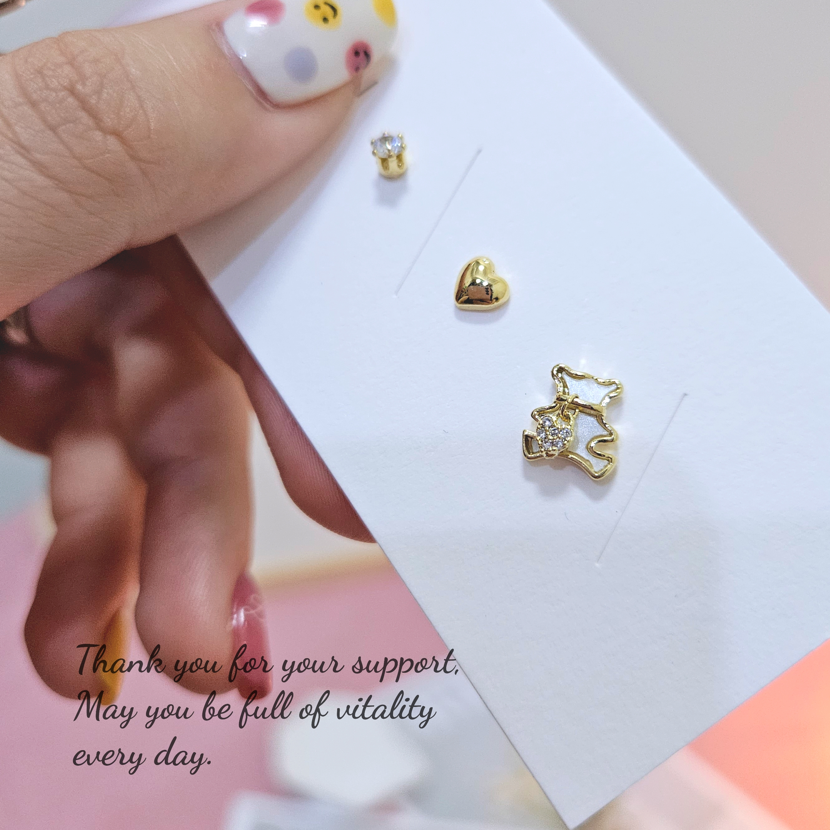 壓釦卡榫式的耳環,配戴時也有機率壓彎耳針造成錯位無法卡住!一樣輕輕搬動調整即可