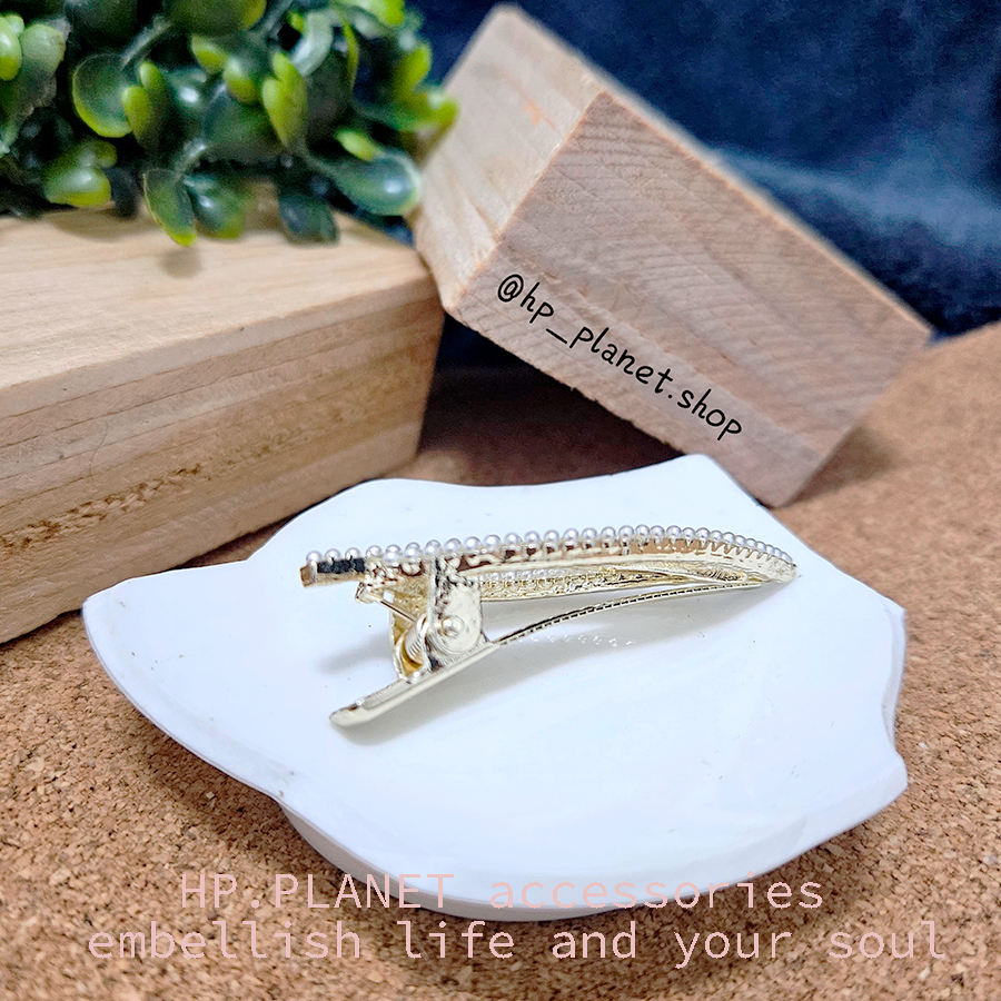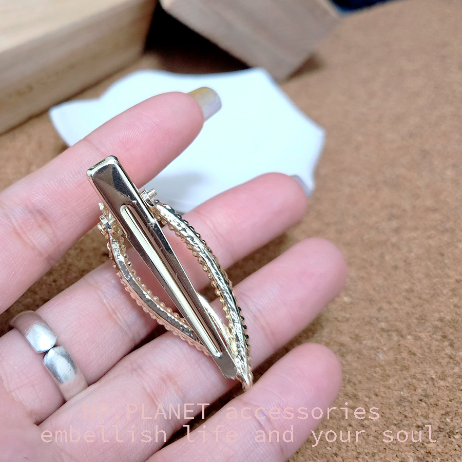 正韓 仙女系藍色滴油緞帶金色珍珠小花壓夾