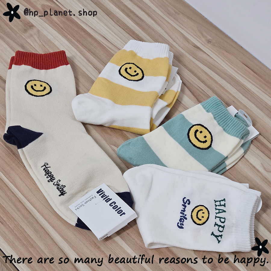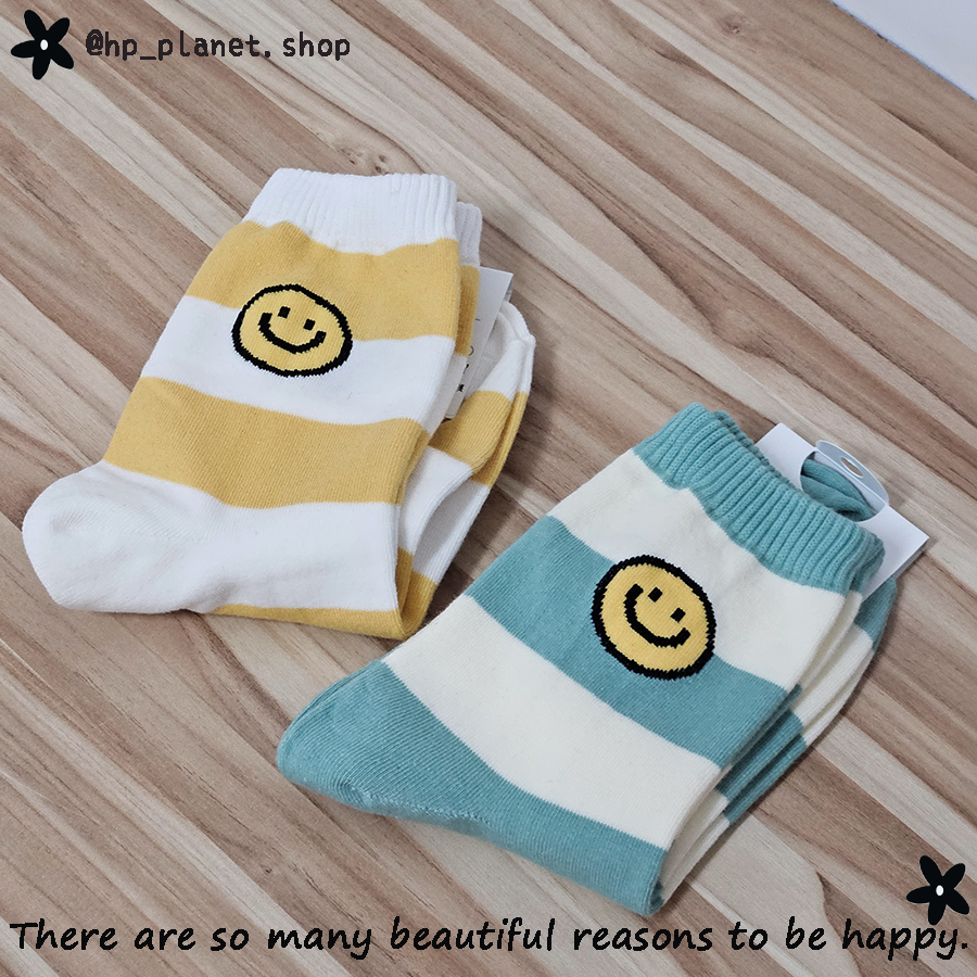 H闆自留款 正韓 素面/彩色條紋微笑襪襪